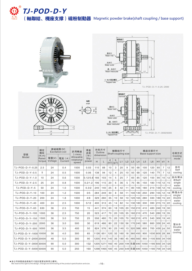 POD-D-Y磁粉制動器水冷式磁粉制動器特性