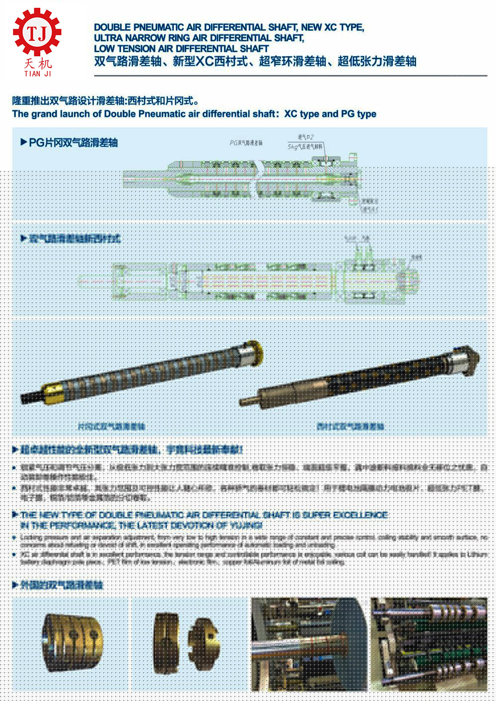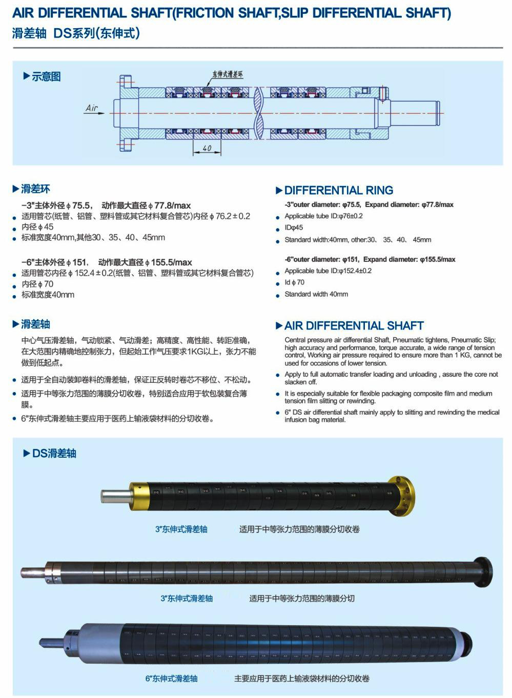 6.西村式滑差氣脹軸又分為單氣路滑差軸跟雙氣路滑差軸兩種,雙氣路滑差軸一路控制撐緊紙管,另外一路控制調節張力大小。