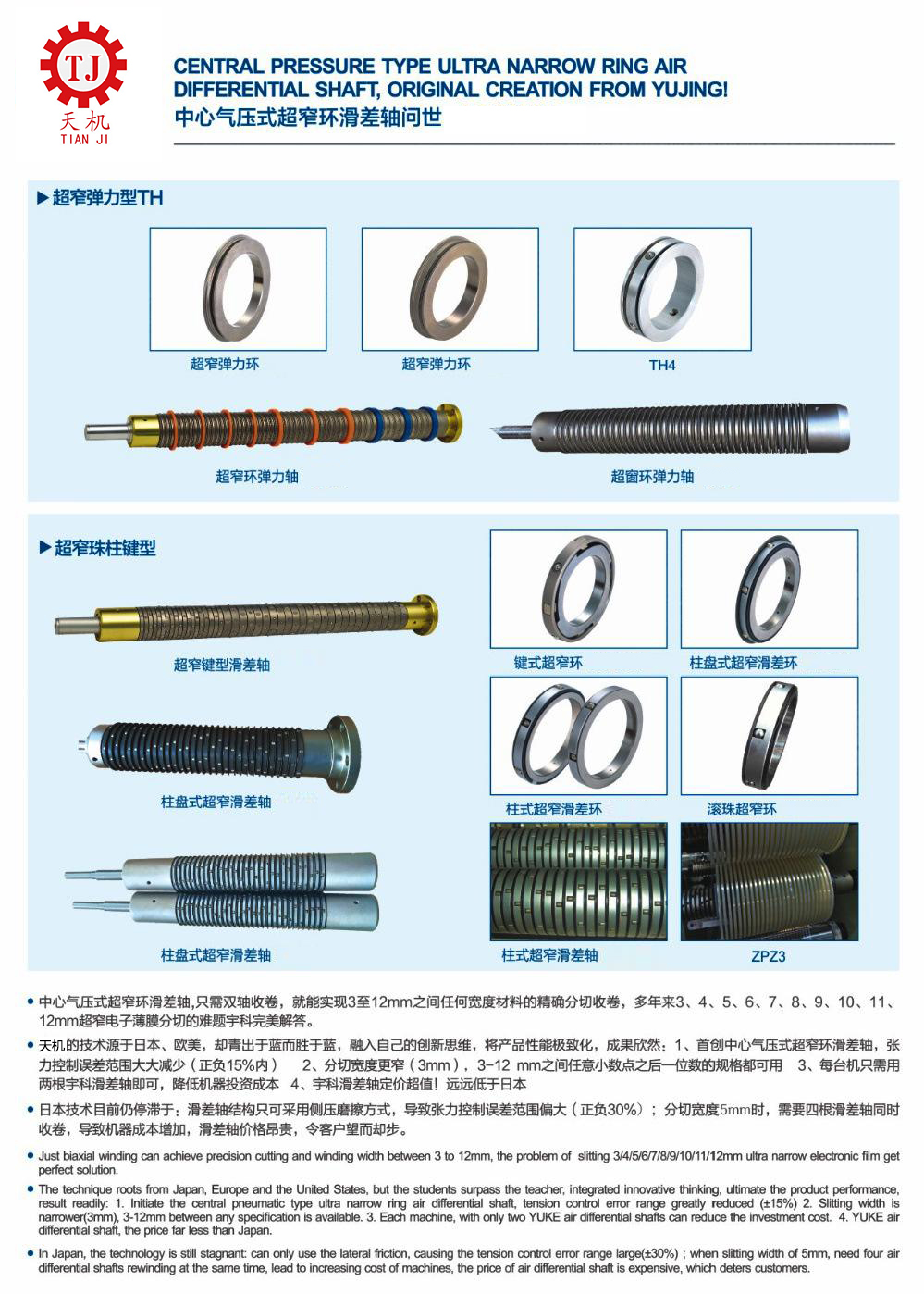 1.中心氣壓滑差軸,氣動鎖緊,氣動滑差。高精度,高性能,轉矩準確,在大范圍內精確地控制張力。