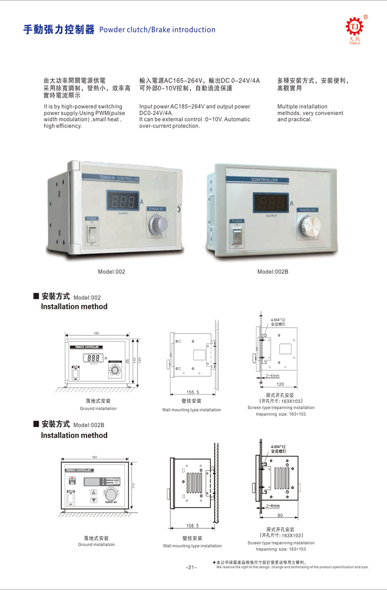 上海手動KTC002張力控制器多方式安裝