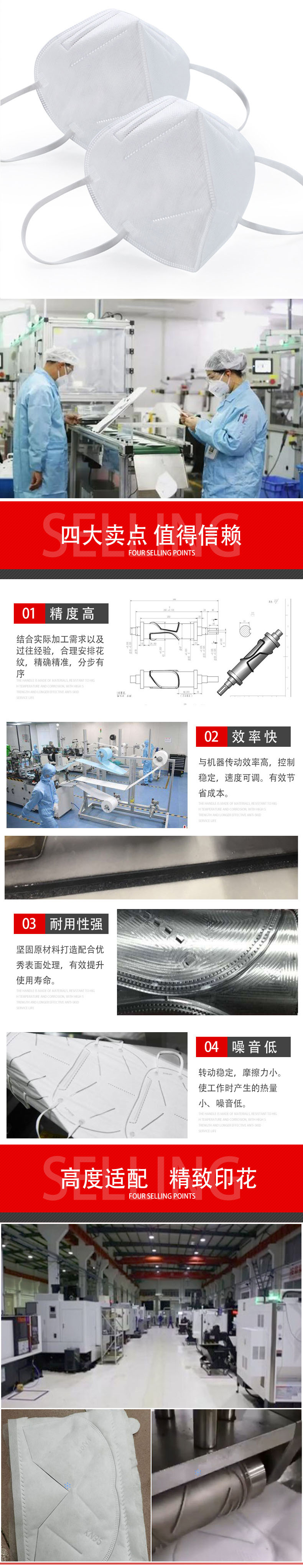 2、kn95口罩機壓花輥傳動精準,控制穩定,速度可調,操作簡單快捷,節省加工時間與加工成本。