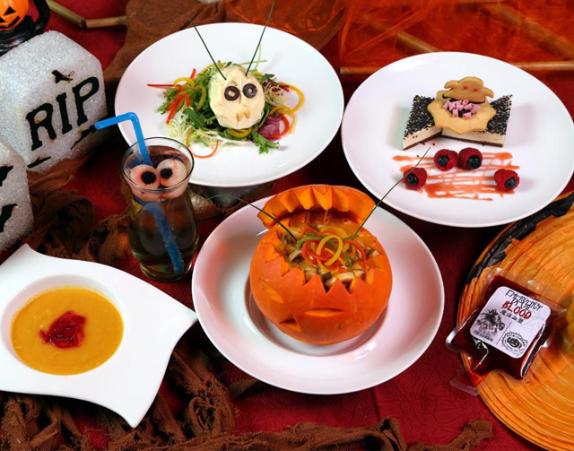 怪物食品:芝士南瓜球把奶酪、雞蛋、西紅柿或煮熟的胡蘿卜和幾瓣蒜磨混合后滾成小球用橄欖和香草作裝飾做出小的南瓜臉